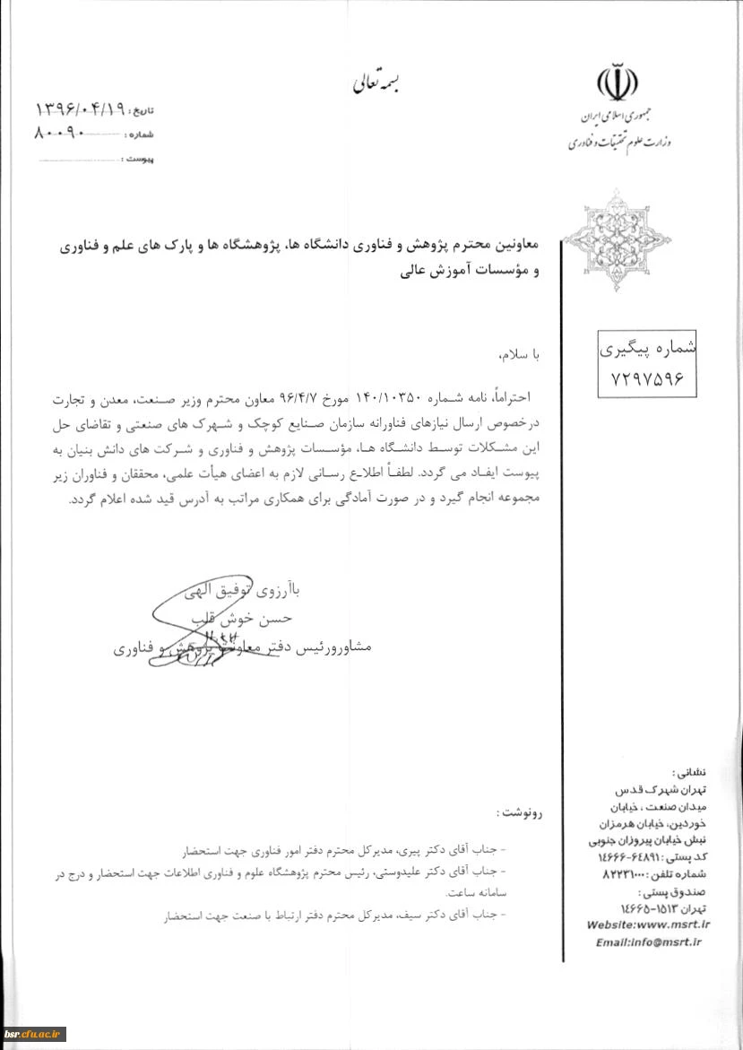 امتیاز دهید : اطلاعیه سازمان صنایع کوچک و شهرک های صنعتی در زمینه نیاز های فناورانه 8 چهارشنبه 11 مرداد 1396 ساعت 8:12