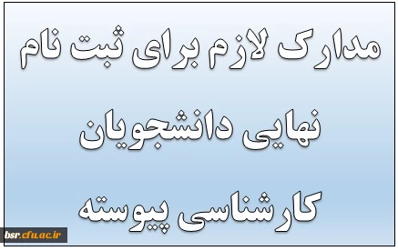امتیاز دهید : مدارک لازم برای ثبت نام نهایی دانشجویان کارشناسی پیوسته1396 2 شنبه 1 مهر 1396 ساعت 8:06