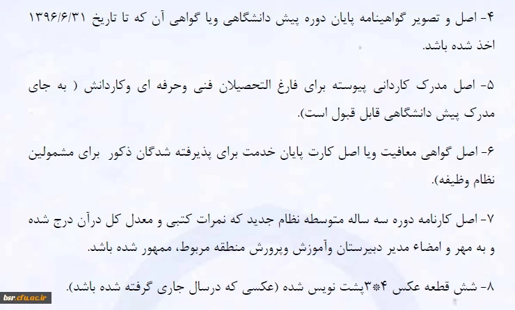 امتیاز دهید : مدارک لازم برای ثبت نام نهایی دانشجویان کارشناسی پیوسته1396 4 شنبه 1 مهر 1396 ساعت 8:06