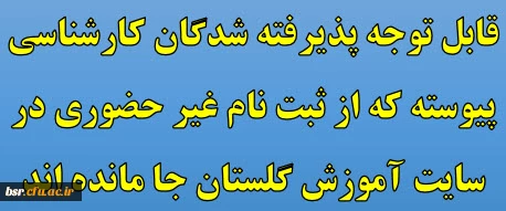 قابل توجه پذیرفته شدگان کارشناسی پیوسته که از ثبت نام غیر حضوری در سایت آموزش گلستان جا مانده اند 2