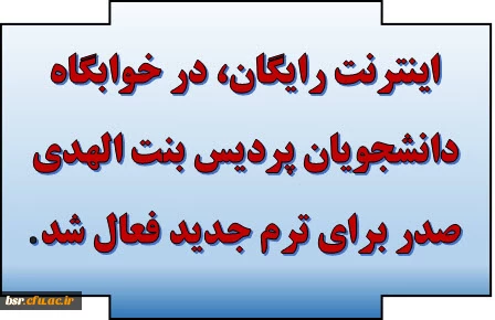 امتیاز دهید : اینترنت رایگان، در خوابگاه دانشجویان پردیس بنت الهدی صدر برای ترم جدید فعال شد. 2 سهشنبه 8 اسفند 1396 ساعت 11:53