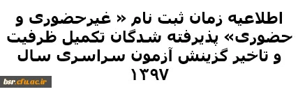 اطلاعیه زمان ثبت نام « غیرحضوری و حضوری» پذیرفته شدگان تکمیل ظرفیت و تاخیر گزینش آزمون سراسری سال 1397 2
