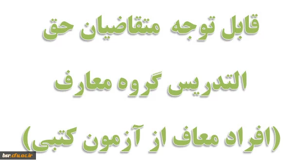 امتیاز دهید : قابل توجه متقاضیان حق التدریس گروه معارف (افراد معاف از آزمون کتبی) دوشنبه 20 مرداد 1393 ساعت 12:23
