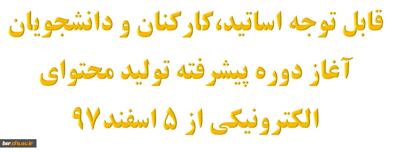 امتیاز دهید : آغاز دوره پیشرفته تولید محتوای الکترونیکی از 5 اسفند97 2 سهشنبه 30 بهمن 1397 ساعت 10:44