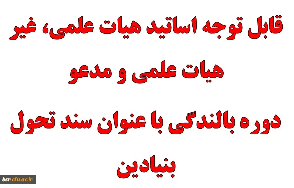 قابل توجه اساتید هیات علمی، غیر هیات علمی و مدعو دوره بالندگی با عنوان سند تحول بنیادین 2