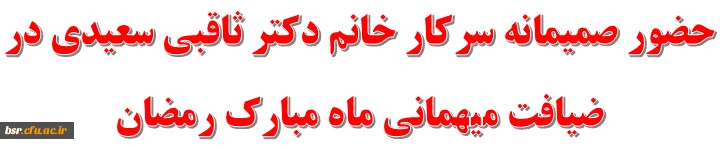 امتیاز دهید : حضور صمیمانه سرکار خانم دکتر ثاقبی سعیدی در ضیافت میهمانی ماه مبارک رمضان 2 یکشنبه 12 خرداد 1398 ساعت 13:25