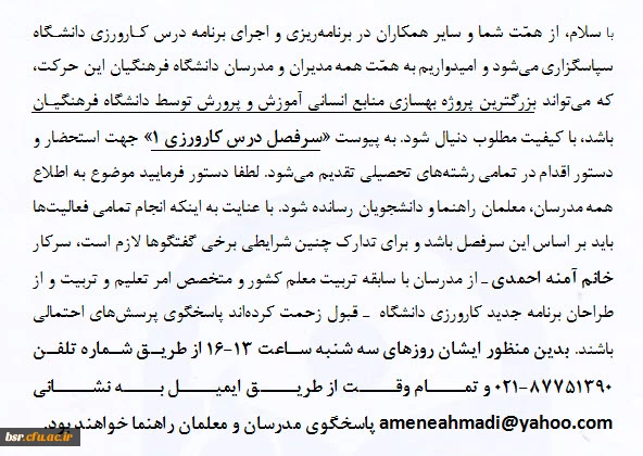 سرفصل کارورزی جهت اطلاع اساتید محترم کارورزی 2