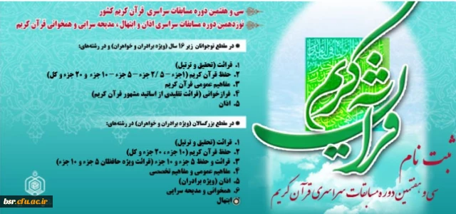 ثبت نام سی وهفتمین دوره مسابقات قرآنی استان گیلان