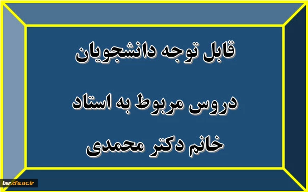 امتیاز دهید : قابل توجه دانشجویان دروس مربوط به استاد خانم دکتر محمدی 2 پنجشنبه 15 اسفند 1398 ساعت 23:13