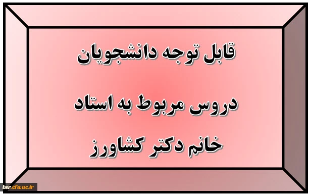امتیاز دهید : قابل توجه دانشجویان دروس مربوط به استاد خانم دکتر کشاورز 2 دوشنبه 19 اسفند 1398 ساعت 16:29