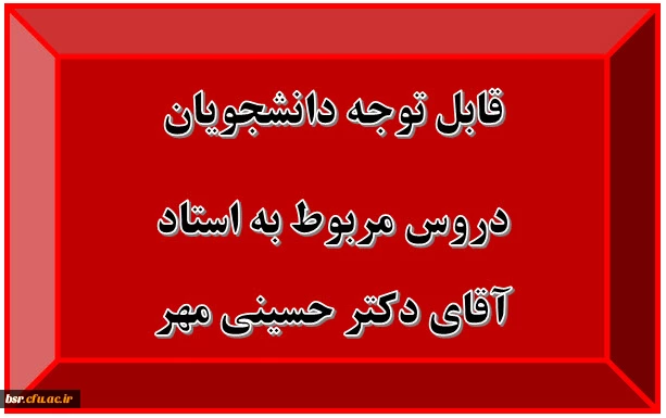 امتیاز دهید : قابل توجه دانشجویان دروس مربوط به استاد آقای دکتر حسینی مهر 2 دوشنبه 19 اسفند 1398 ساعت 17:02