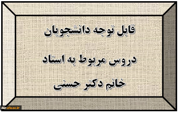 امتیاز دهید : قابل توجه دانشجویان دروس مربوط به استاد خانم دکتر حسنی 2 دوشنبه 19 اسفند 1398 ساعت 21:32