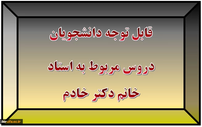 امتیاز دهید : قابل توجه دانشجویان دروس مربوط به استاد خانم دکتر خادم 2 دوشنبه 26 اسفند 1398 ساعت 20:24