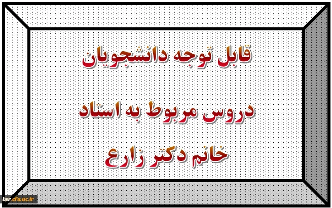 امتیاز دهید : قابل توجه دانشجویان دروس مربوط به استاد خانم دکتر زارع 3 سهشنبه 27 اسفند 1398 ساعت 18:08