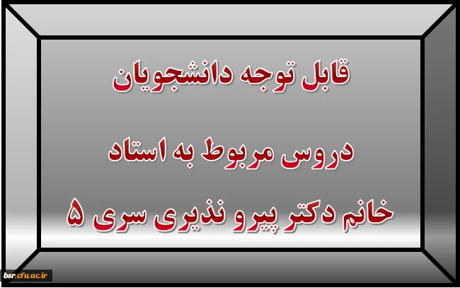 امتیاز دهید : قابل توجه دانشجویان دروس مربوط به استاد خانم دکتر پیرو نذیری سری 5 2 سهشنبه 12 فروردین 1399 ساعت 13:37