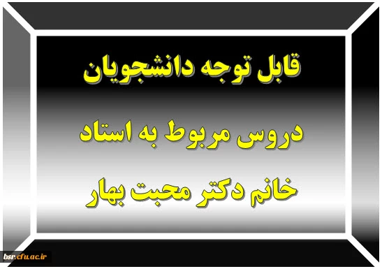 قابل توجه دانشجویان دروس مربوط به استاد خانم دکتر محبت بهار 2