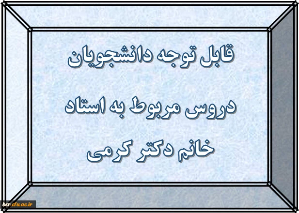 امتیاز دهید : قابل توجه دانشجویان دروس مربوط به استاد خانم دکتر کرمی 2 چهارشنبه 20 فروردین 1399 ساعت 10:06