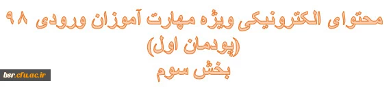 امتیاز دهید : محتوای الکترونیکی ویژه مهارت آموزان ورودی 98 (پودمان اول) بخش سوم 2 چهارشنبه 7 خرداد 1399 ساعت 11:06