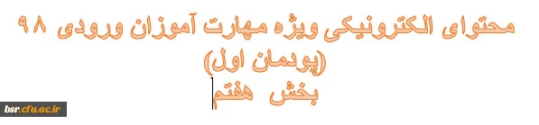 امتیاز دهید : محتوای آموزشی مهارت آموزان وروددی 98 (پودمان اول)- بخش هفتم 2 شنبه 17 خرداد 1399 ساعت 12:55