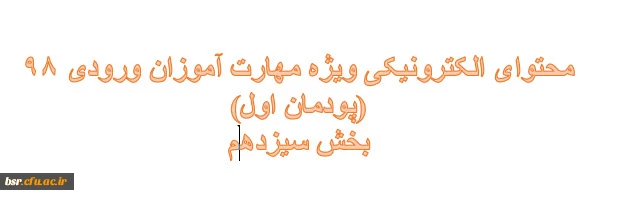 امتیاز دهید : محتوای الکترونیکی آموزشی مهارت آموزان ورودی 98 (پودمان اول)-بخش سیزدهم 2 یکشنبه 25 خرداد 1399 ساعت 15:11