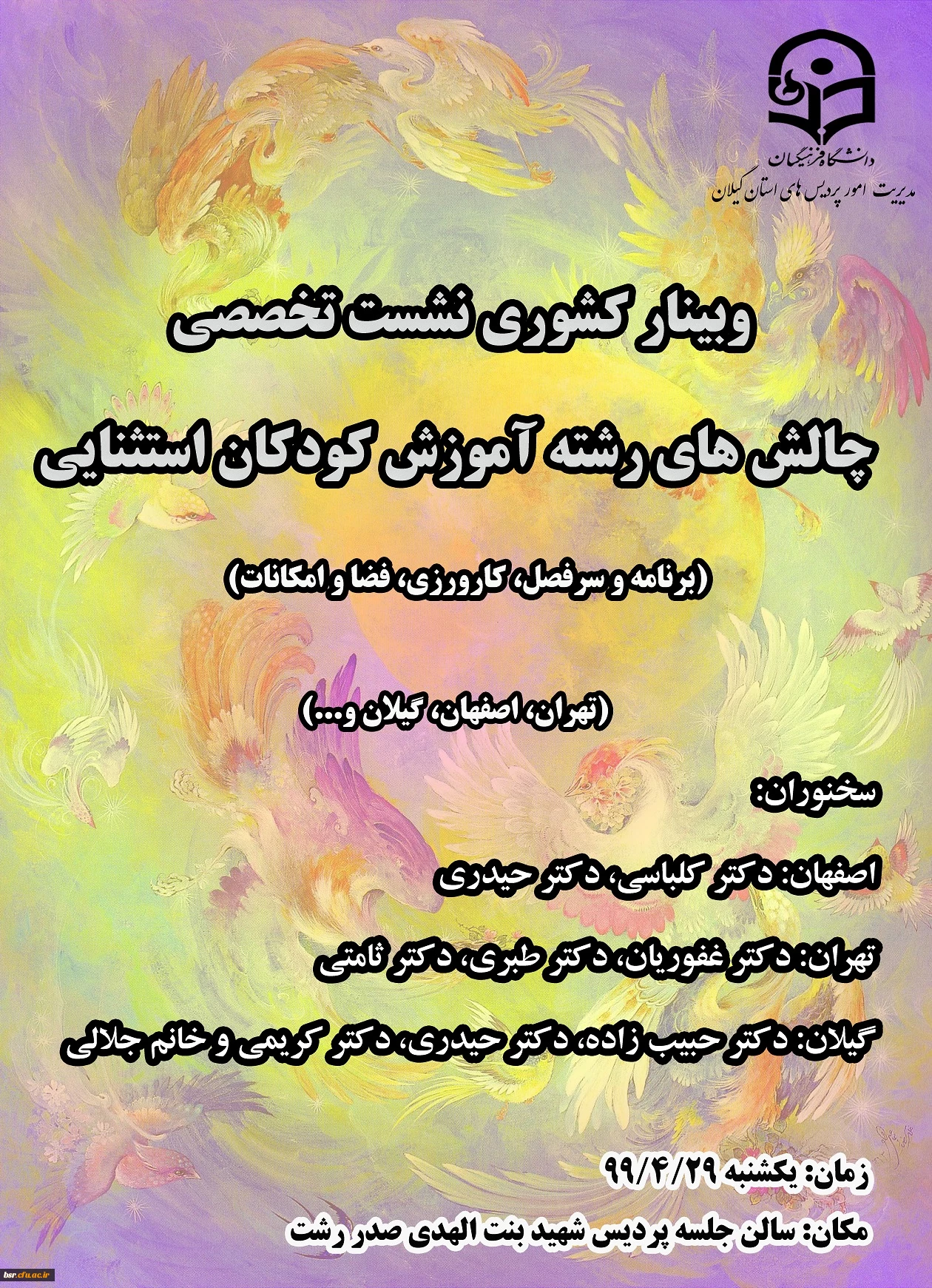 امتیاز دهید : وبینار کشوری نشست تخصصی چالش های رشته آموزش کودکان استثنایی 2 سهشنبه 24 تیر 1399 ساعت 13:18