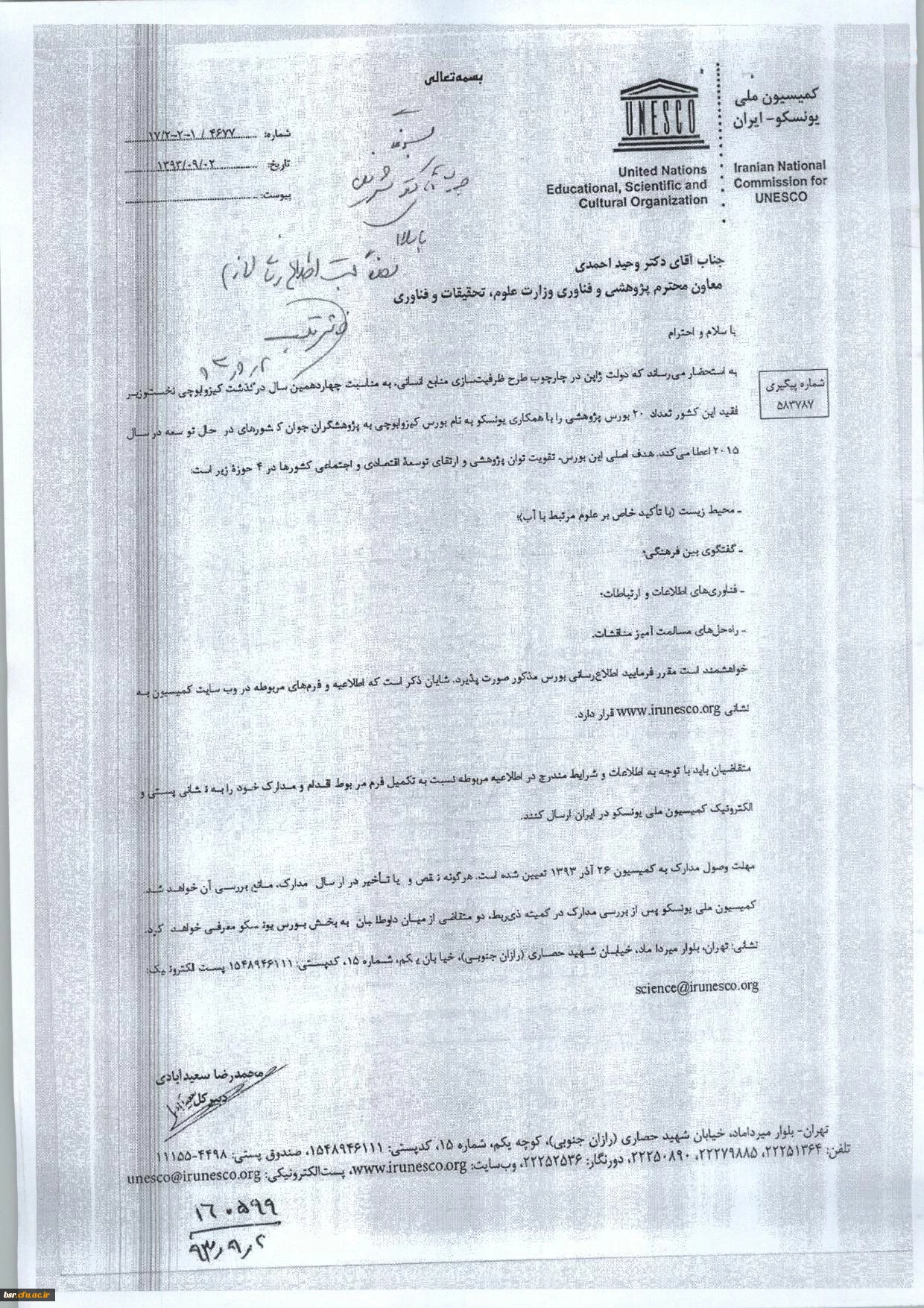 قابل توجه اساتید متقاضی ثبت نام در بورس پژوهش یونسکو 3