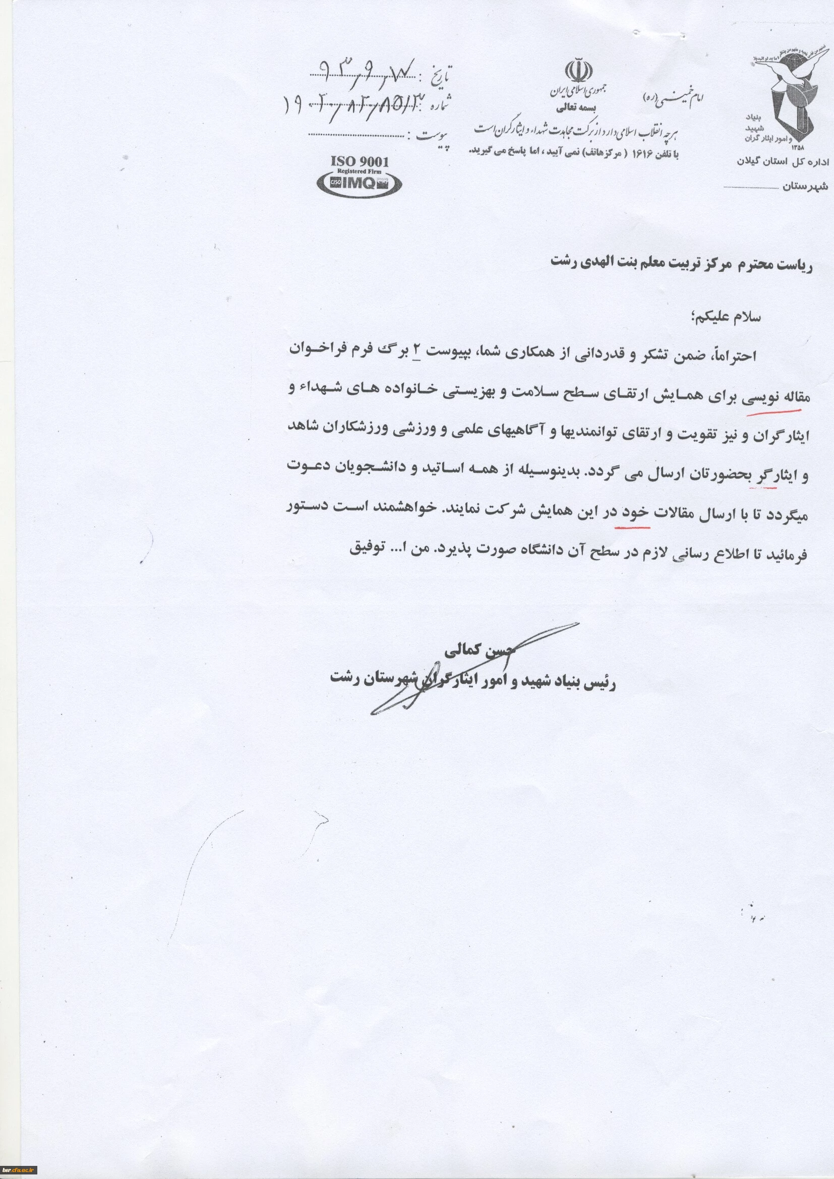 امتیاز دهید : فراخوان مقاله نویسی برای همایش ارتقای سطح سلامت و بهزیستی خانواده های شهدا و ایثارگران 2 چهارشنبه 3 دی 1393 ساعت 15:44
