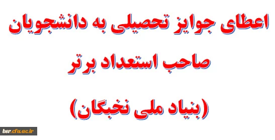 امتیاز دهید : اعطای جوایز تحصیلی به دانشجویان صاحب استعداد برتر(بنیاد ملی نخبگان) 2 دوشنبه 23 شهریور 1394 ساعت 7:46